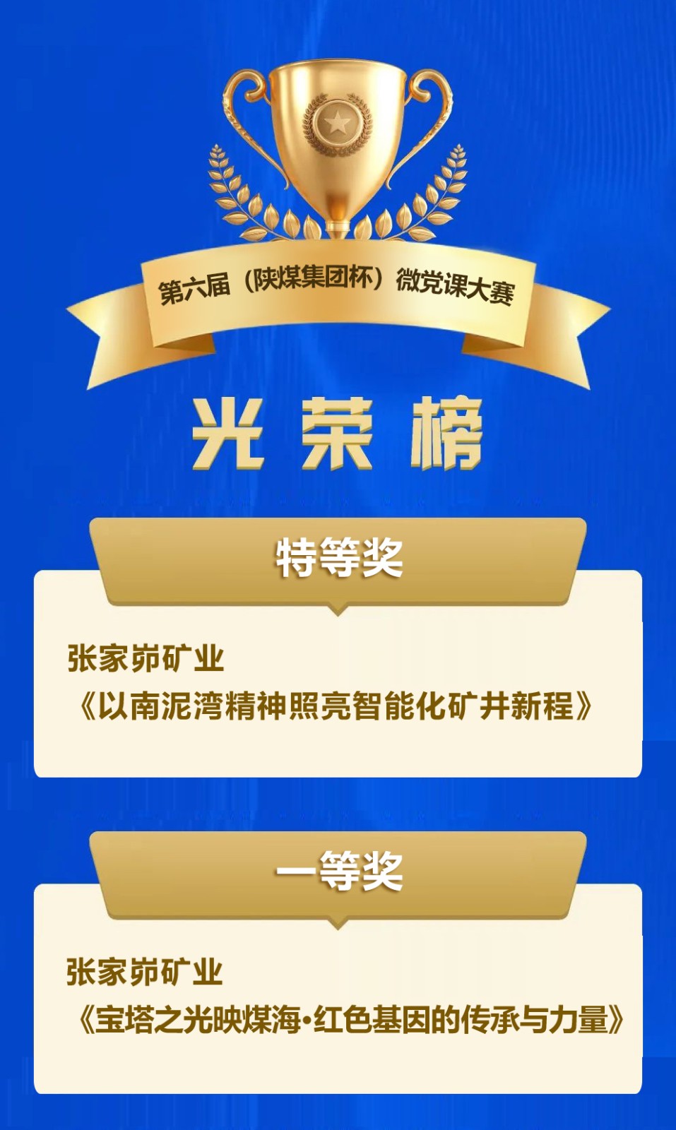 近日,由中国煤炭职工思想政治工作研究会主办、陕煤集团承办的煤炭行业第六届(陕煤集团杯)微党课大赛决赛在江西南昌举办。公司两部参赛作品一举斩获特等奖和一等奖。